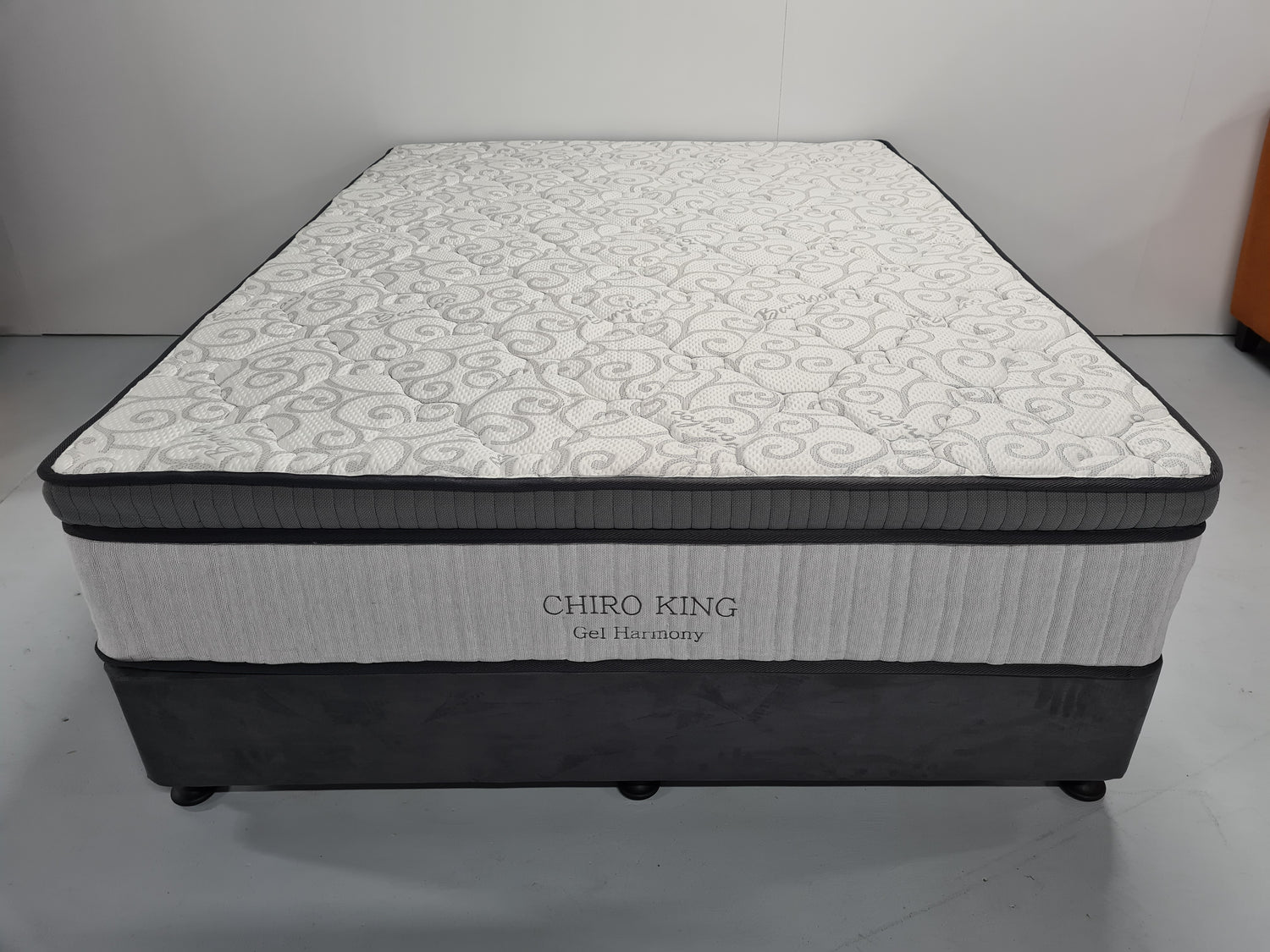 The Chiro King Gel Harmony mattress has bamboo stretch knit fabric which helps to regulate blood flow and temperature for a cooler night’s sleep. The gel-infused memory foam offers a great supportive feel and gives pressure point relief for your hip and shoulder if you sleep on your side. The Chiro King Harmony has 2 layers of premium foam comfort layers which offer the slightly softer cushion feel on the top and extra support underneath to give you a great supportive feel. The support system is a 220mm 6 turn 5 zone pocket coil unit with edge support and anti-partner disturbance technology. The Chiro King Gel Harmony is a great supportive medium feel mattress.
