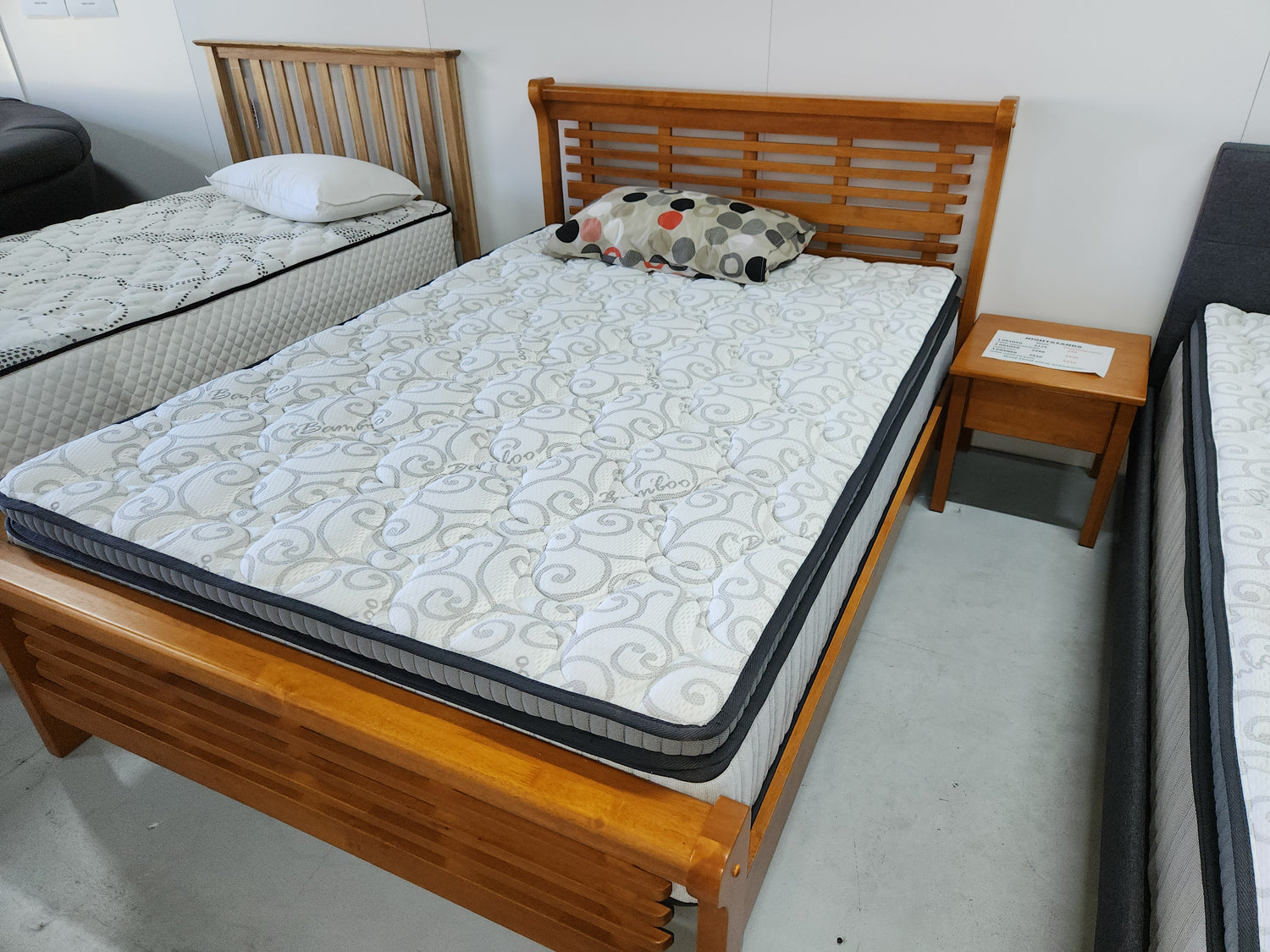 The Chiro King Gel Luxury mattress has bamboo stretch knit fabric which helps to regulate blood flow and temperature for a cooler night’s sleep. The gel-infused memory foam offers a great supportive feel and gives pressure point relief for your hip and shoulder if you sleep on your side. The premium foam comfort layers offer the extra cushion to give the mattress a luxurious feel. The support system is a 220mm 6 turn 5 zone pocket coil unit with edge support and anti-partner disturbance technology. The Chiro King Gel Luxury is a medium soft feel mattress.