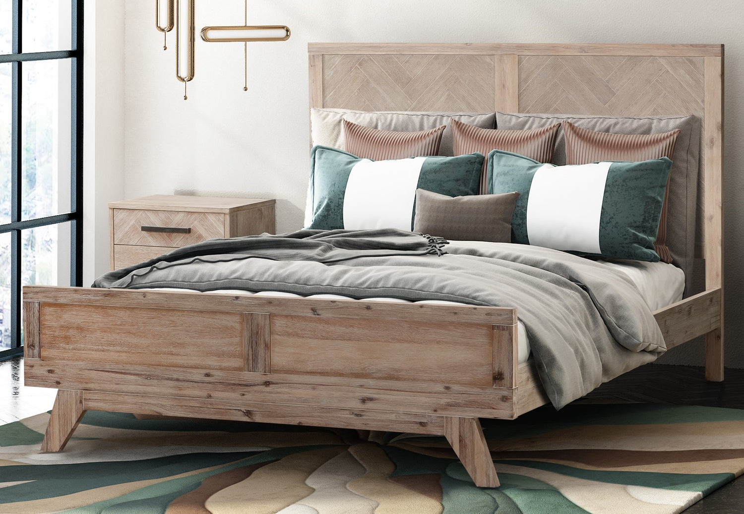 The Parq Bed frame is made from solid timber and has a modern design. The Parq bed has flat timber slats which are supported by a centre rail.