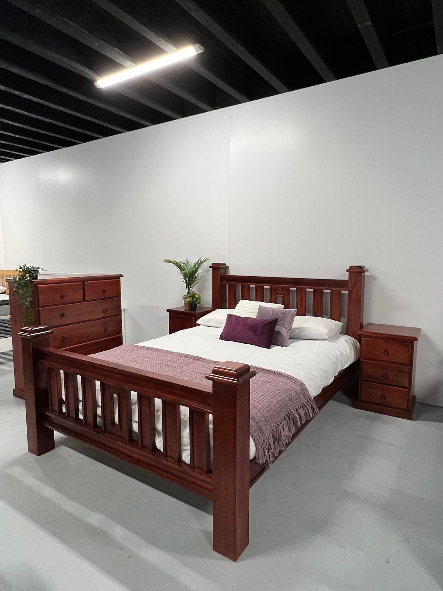 The Donnelly Bed frame is made from solid timber and is a timeless piece which is robust and strong. The Donnelly bed has big thick posts and solid side rails and is supported by thick solid timber slats.