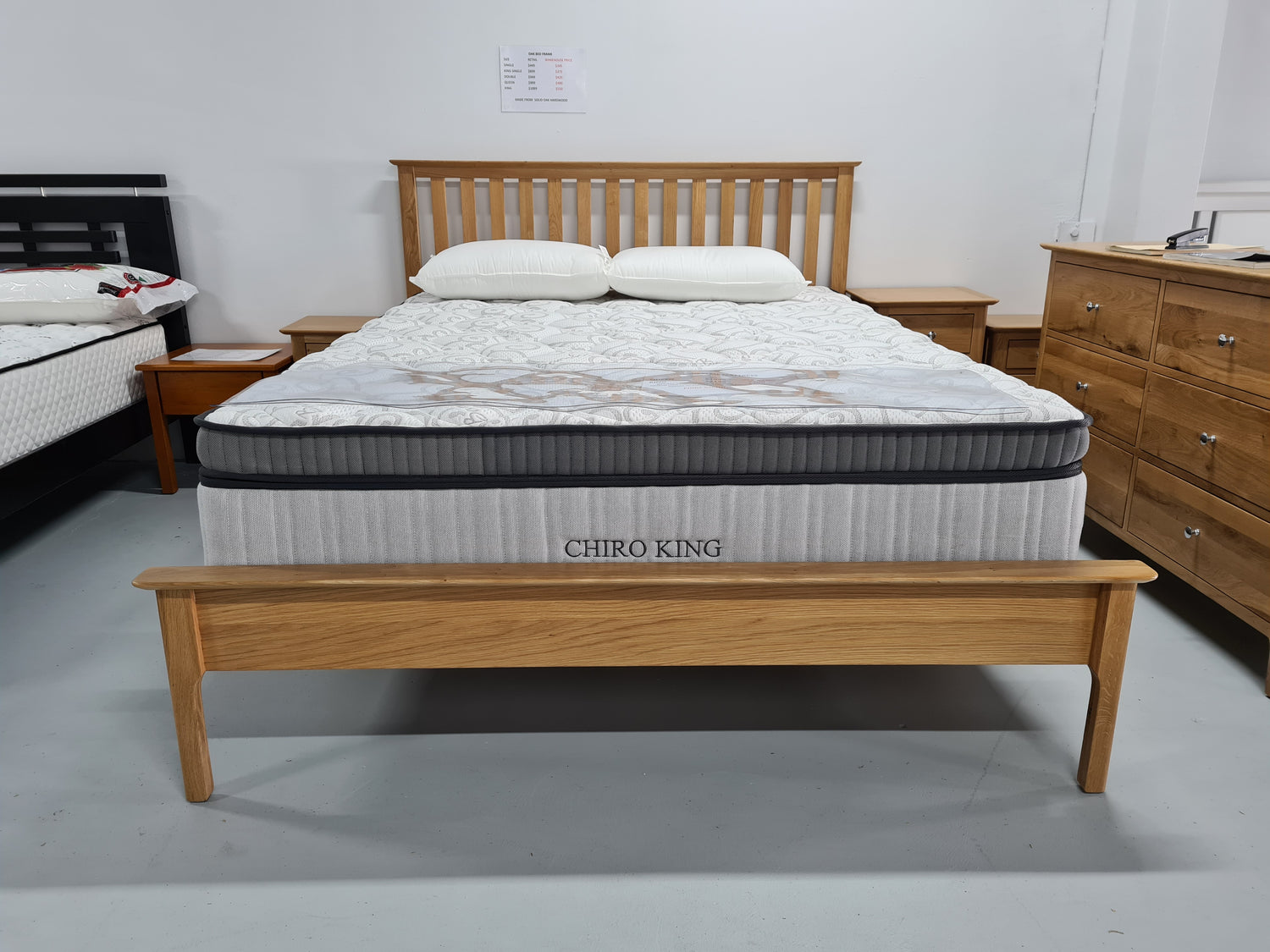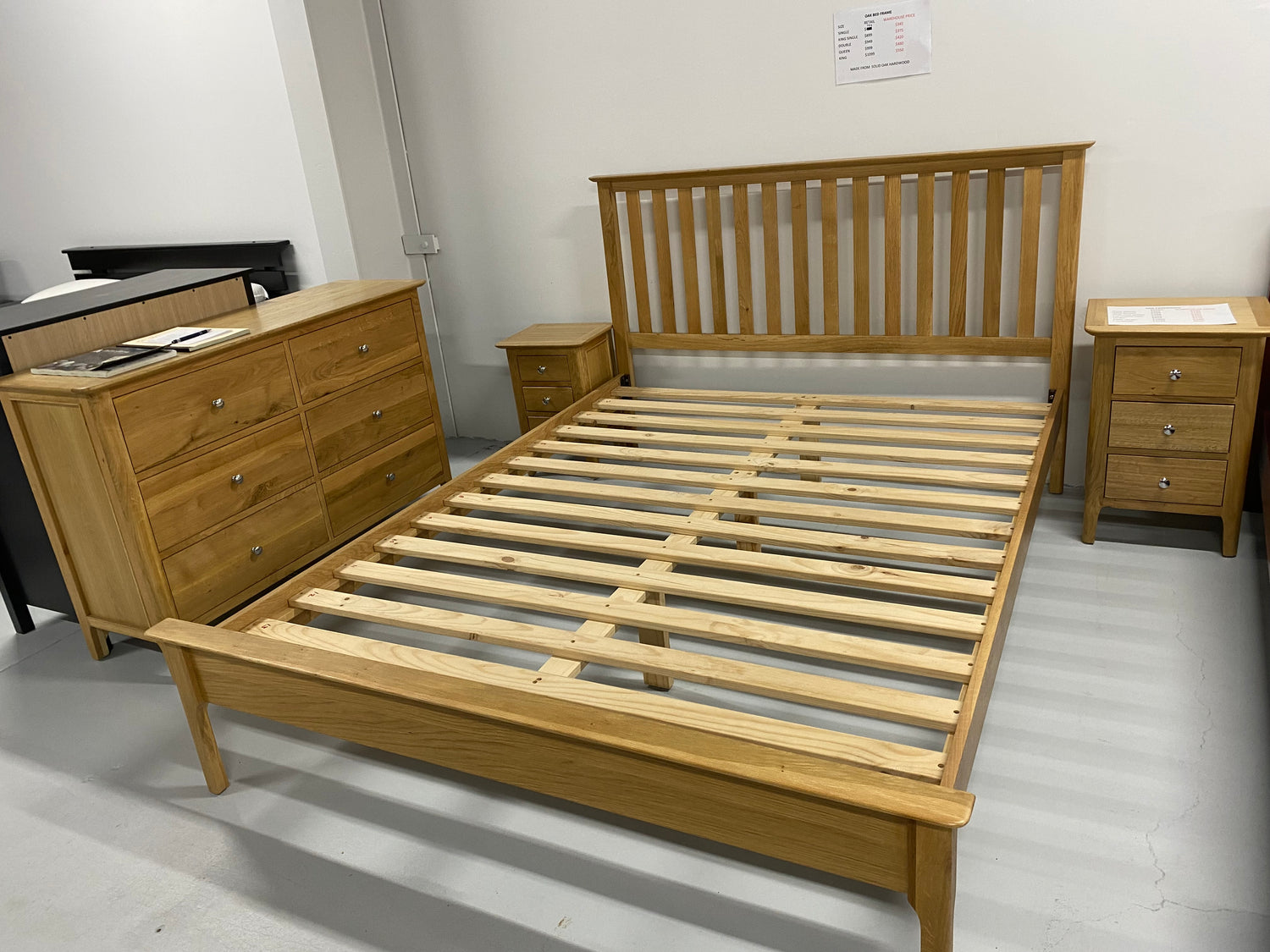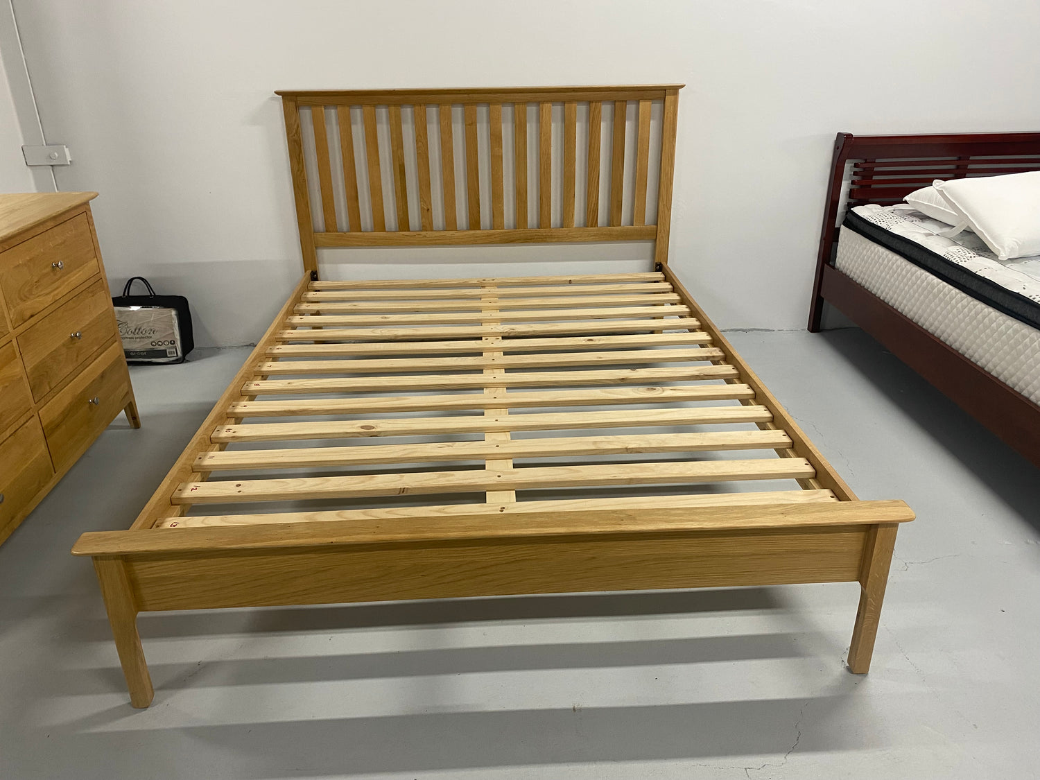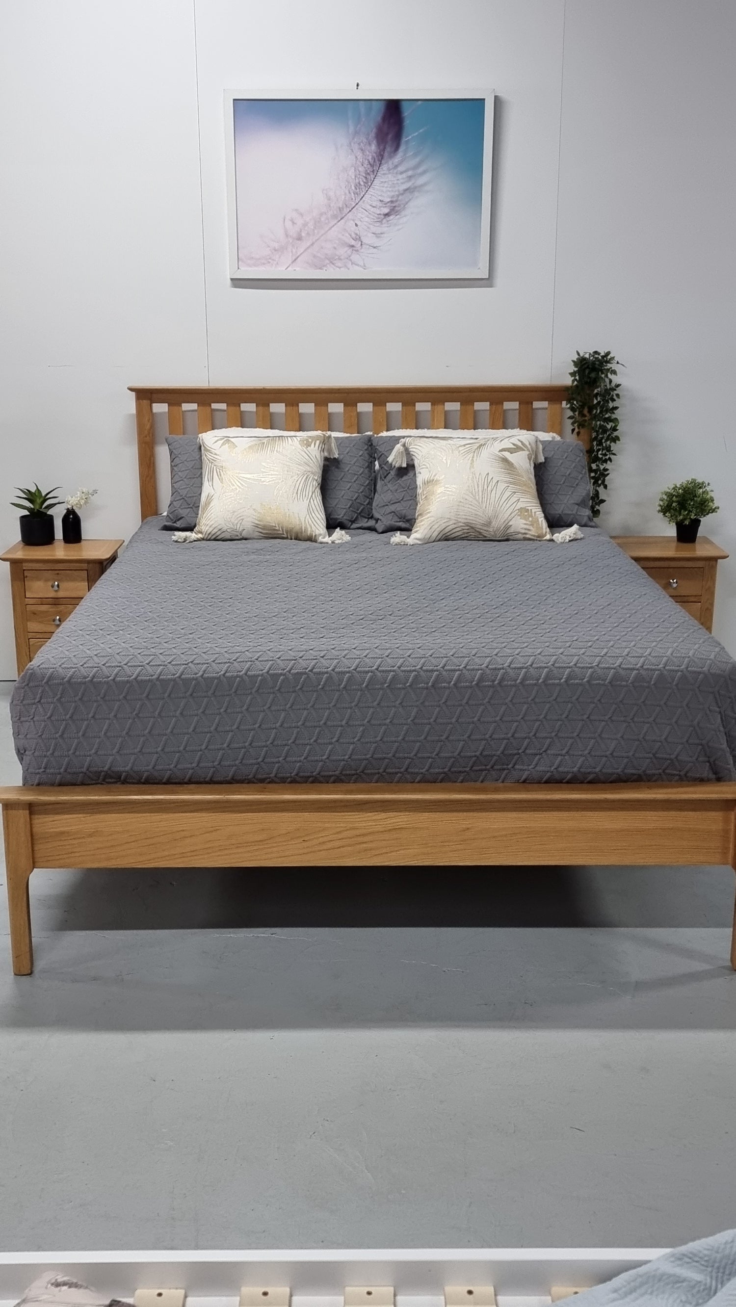 The Glendale bed is made from solid oak timber. The beautiful solid timber grain is highlighted with the natural lacquer finish. This timeless piece of furniture has solid timber slats and the Queen and King have a centre rail offers great support for your mattress.