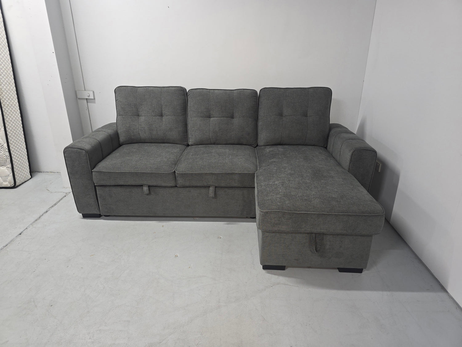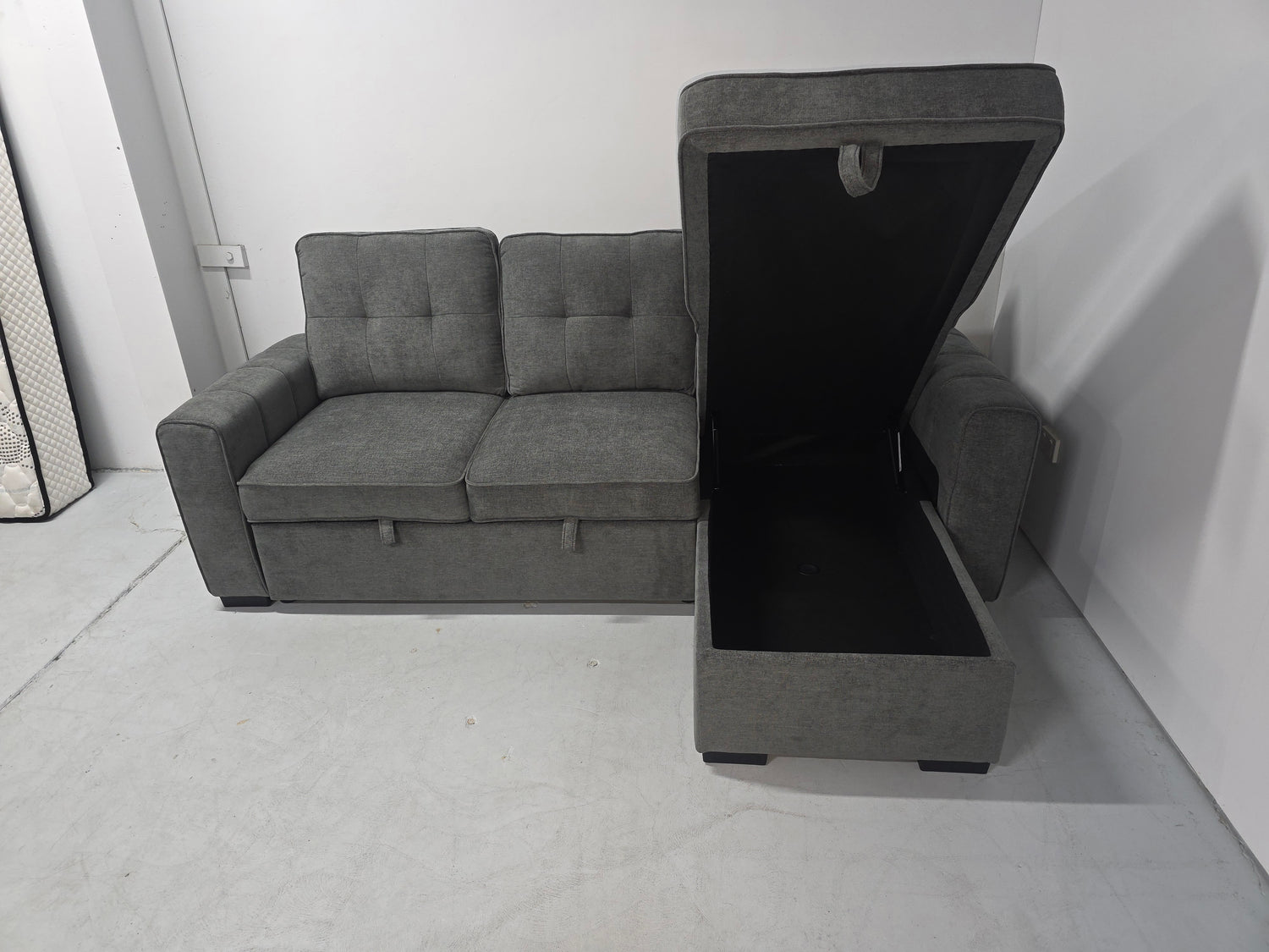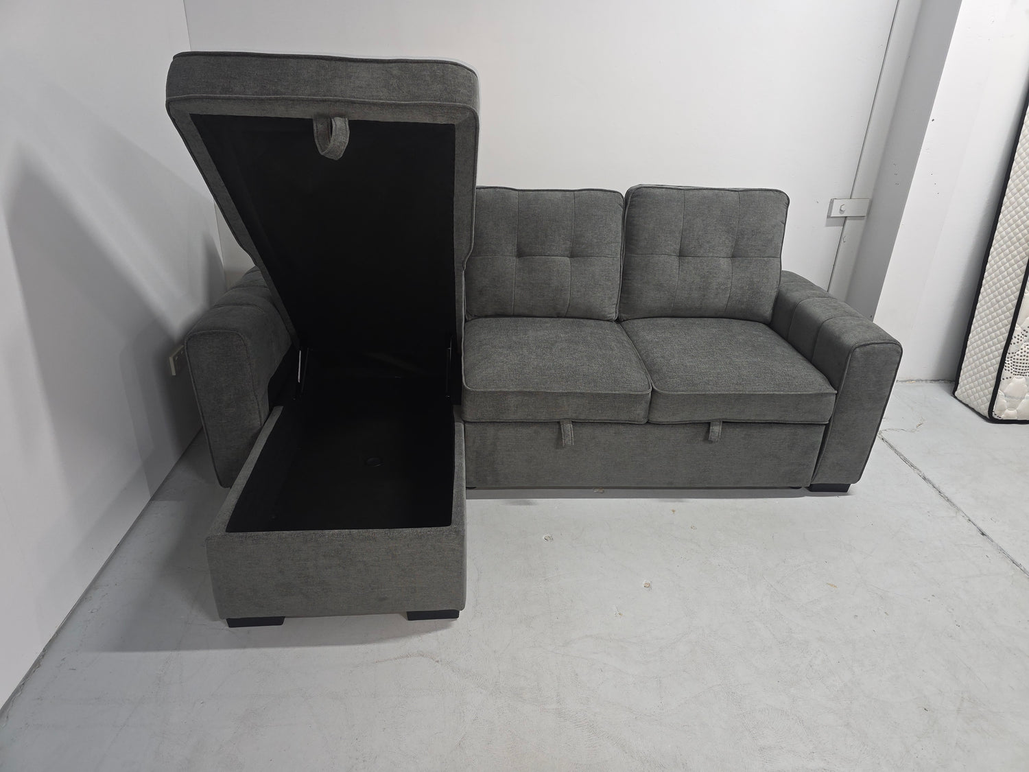 Hobart Corner Lounge with Chaise: Modern Design with Smart Storage and Sofa Bed