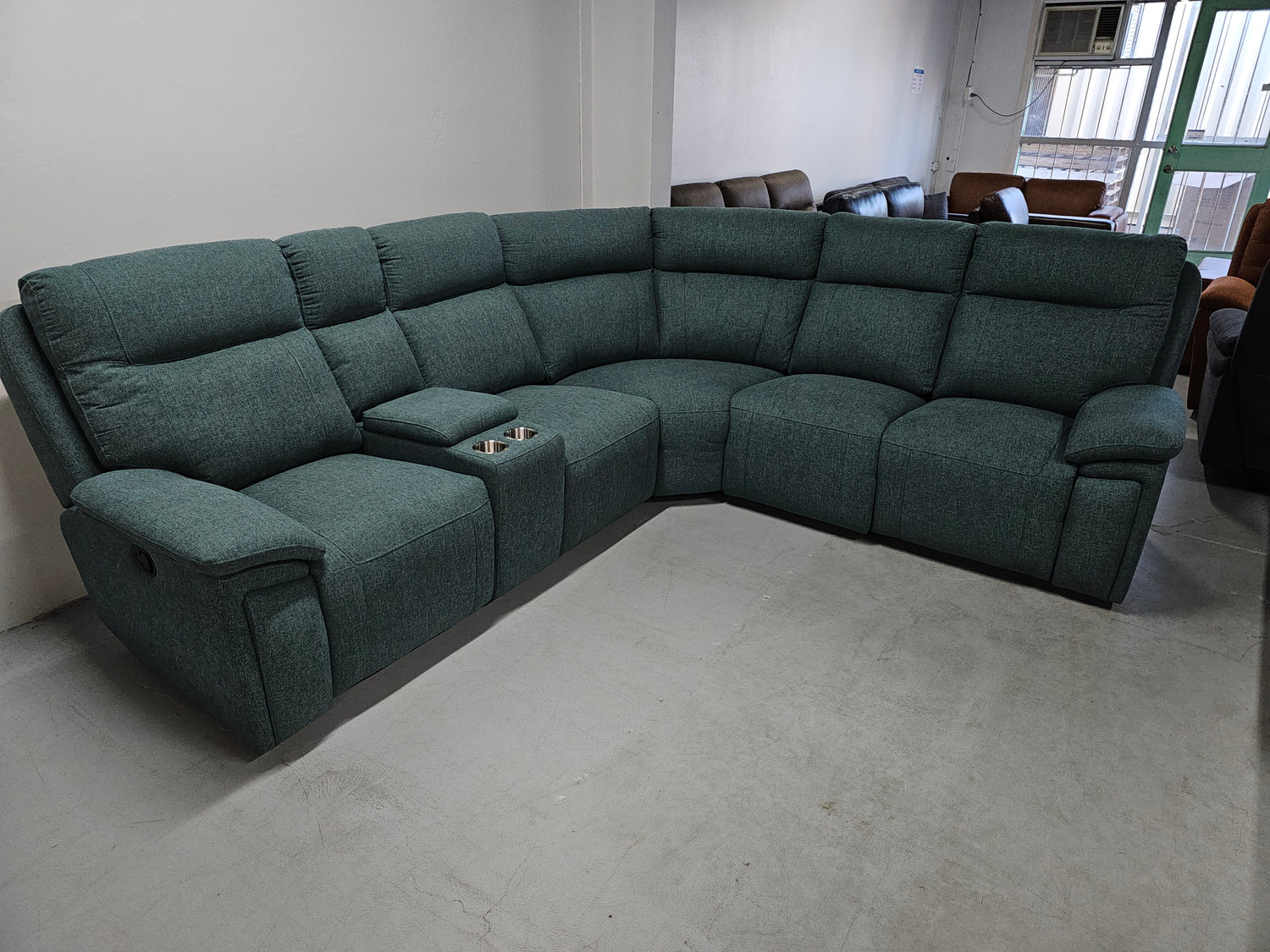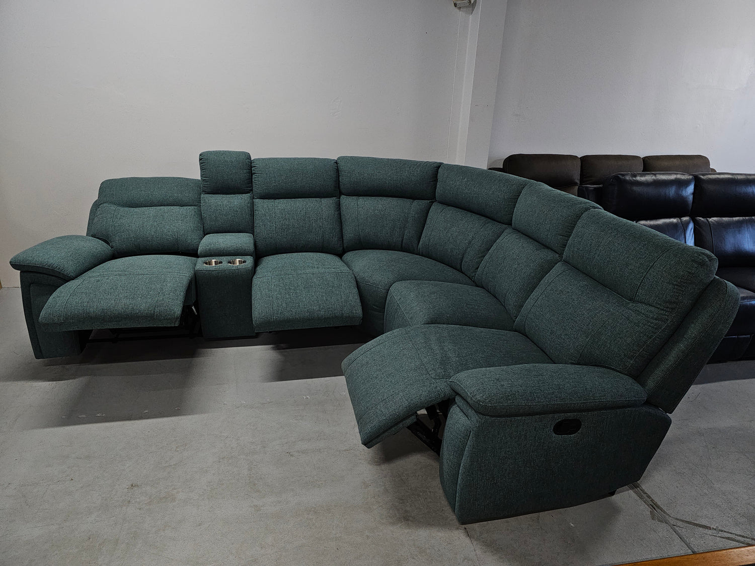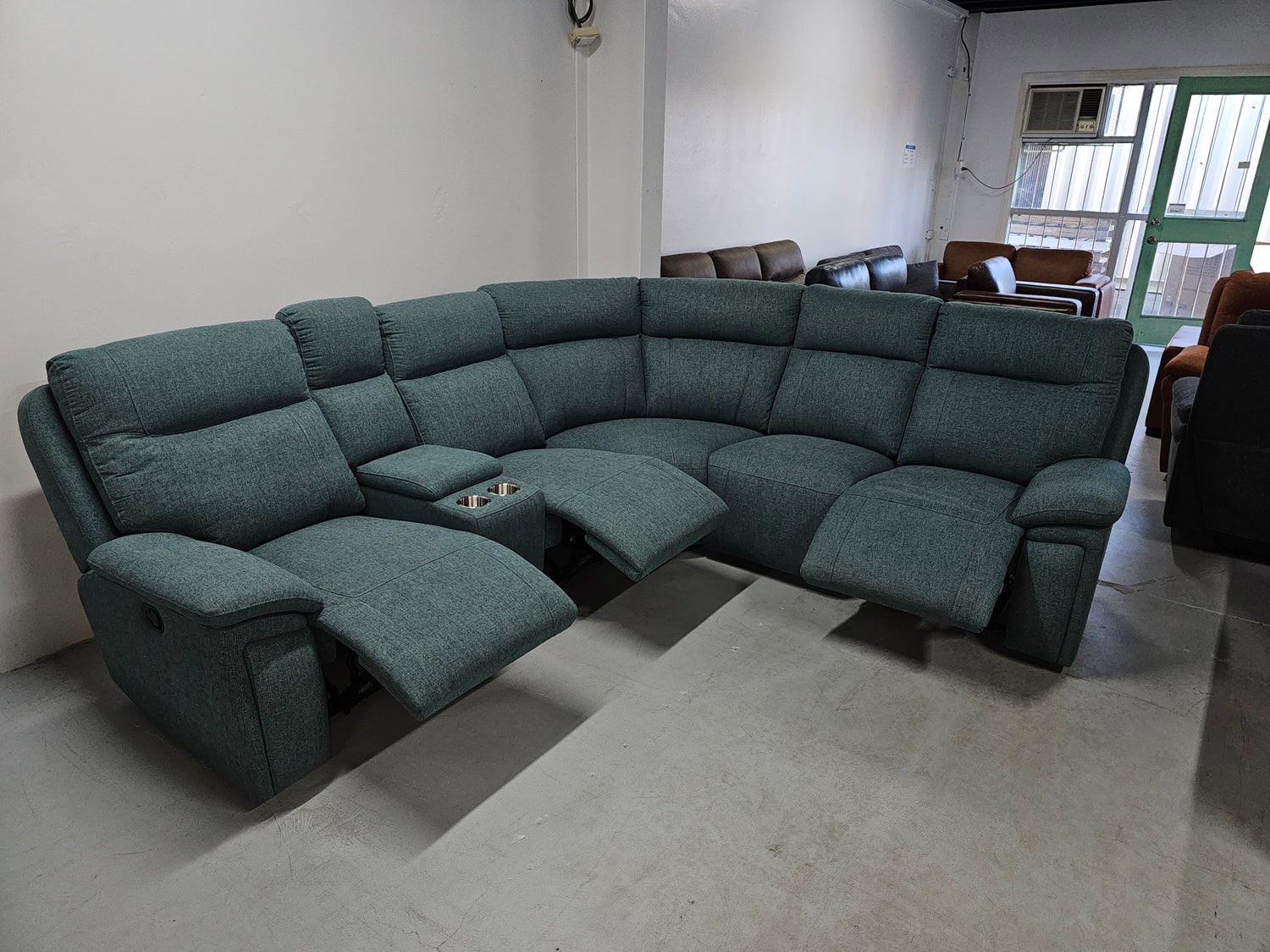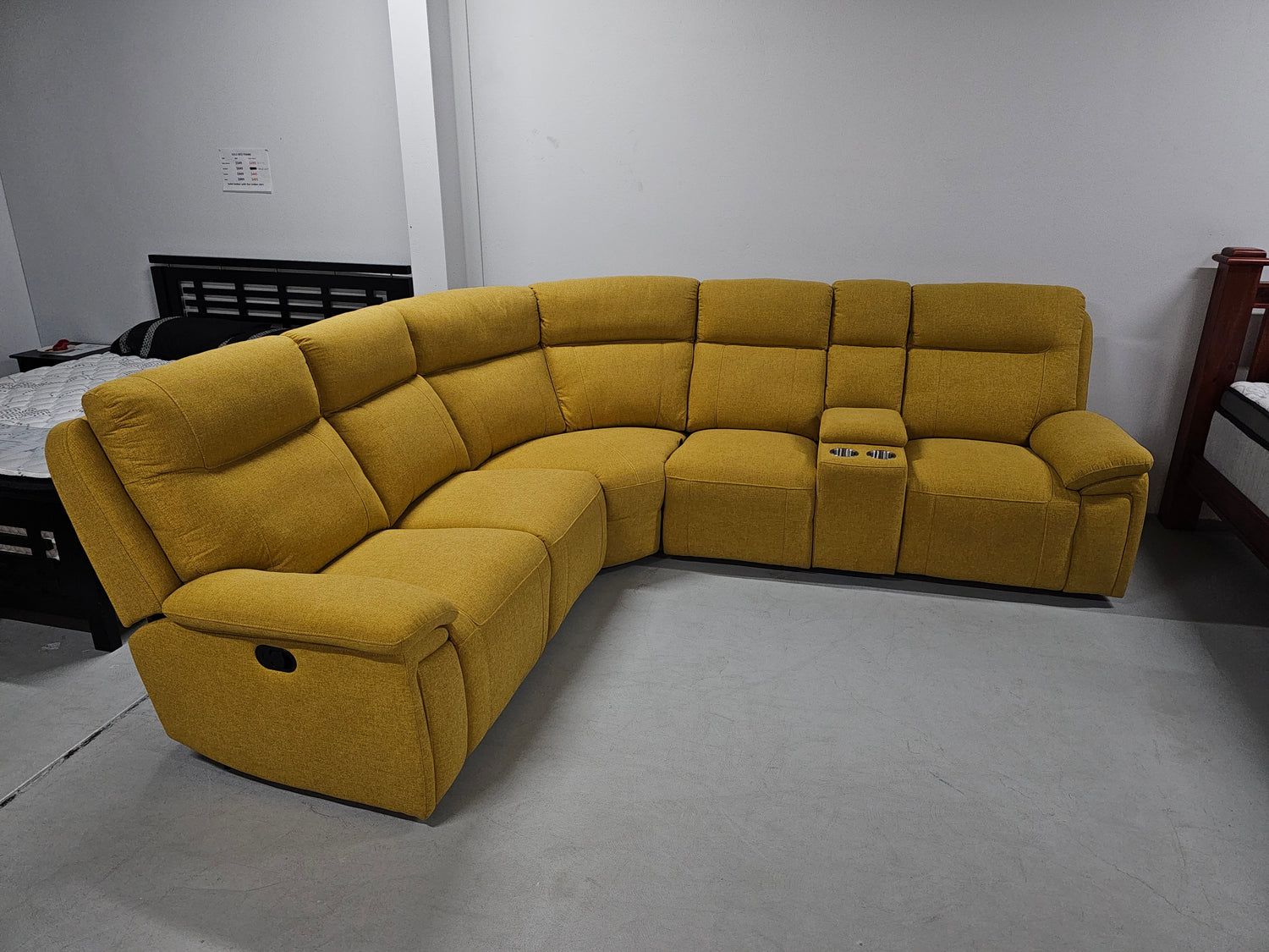 The Macy corner lounge has 5 seats and a console. The Macy corner lounge is modular 3 recliners and is finished in a thick linen fabric. This corner lounge is extremely comfortable, supportive and is available in yellow or teal linen fabric.