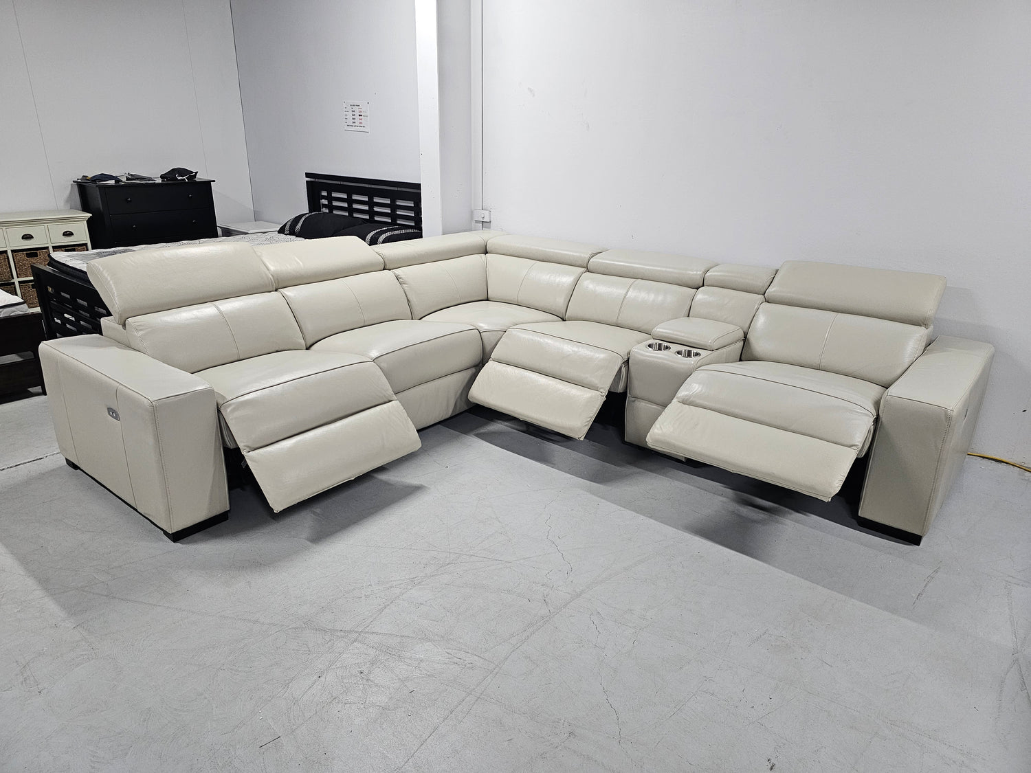 The Valencia full leather media lounge is available in Beige.
